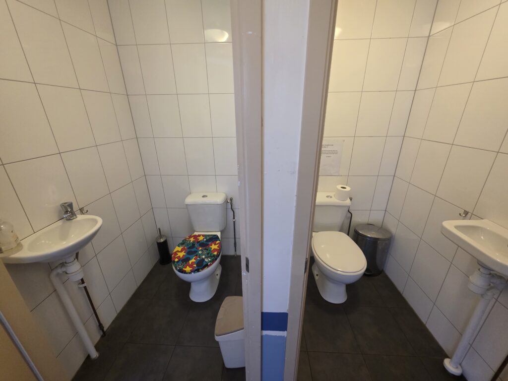 We hebben twee toiletten in het gebouw, beide bij de ingang van het gebouw.