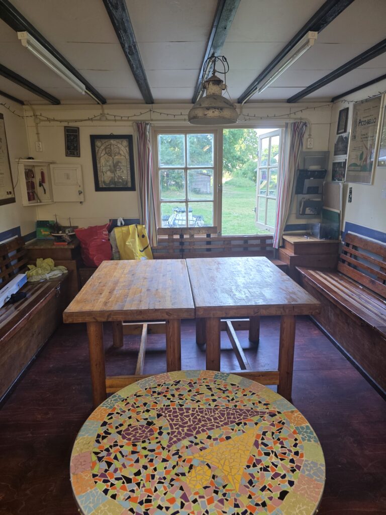 Het lokaal beschikt over banken en een eigen keuken en houtkachel.